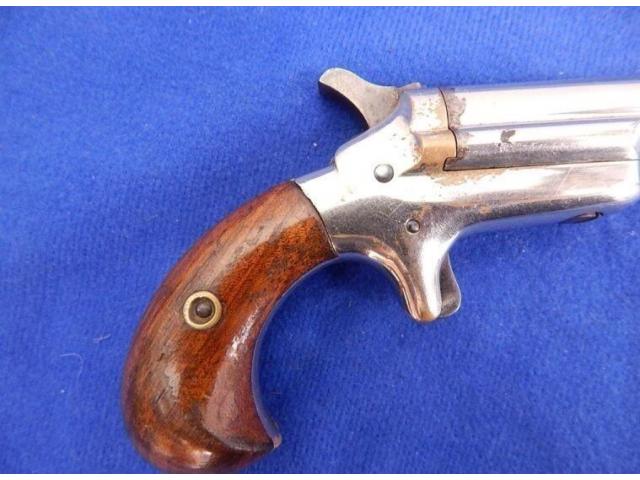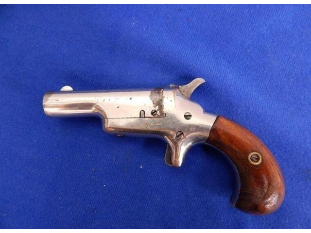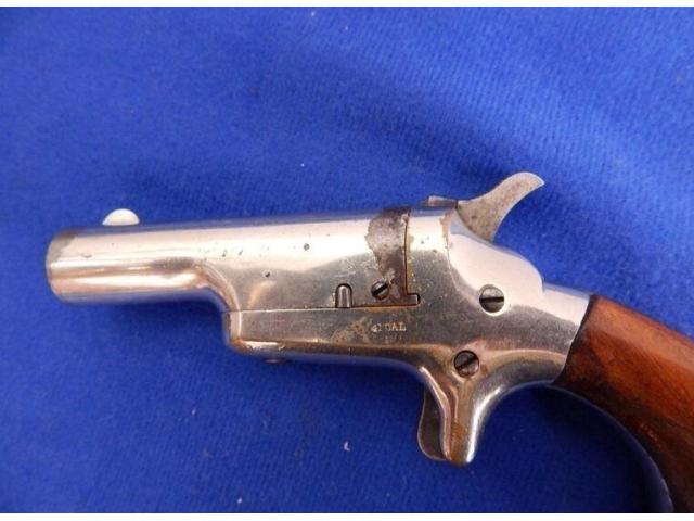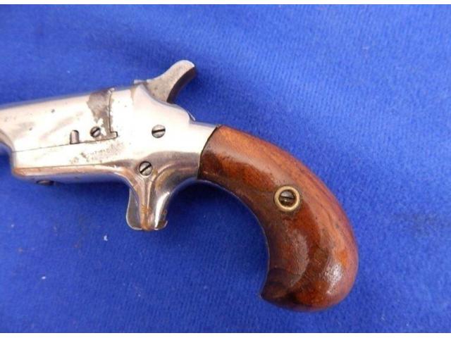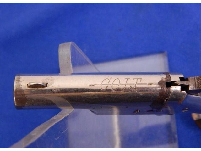 For sale is this Antique 1870s-80s Colt 3rd Model 41 Caliber Deringer. Pistol measures 5" overall and is in Fine condition with around 85-90% finish. Bore and actions are fine. Wood grips are excellent. Made circa 1870s-80s by maker Colt.