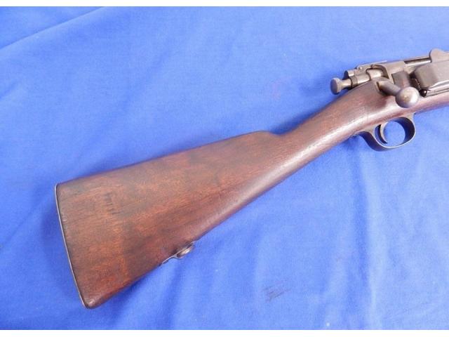 Serial #66xx. Rifle measures 49-1/2″ overall and remains in fine untouched condition. Bore and actions are fine. Stock is fine and has traces of a cartouche. Made circa 1894-5