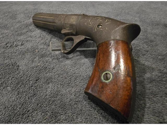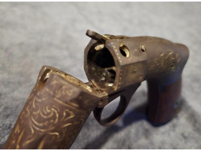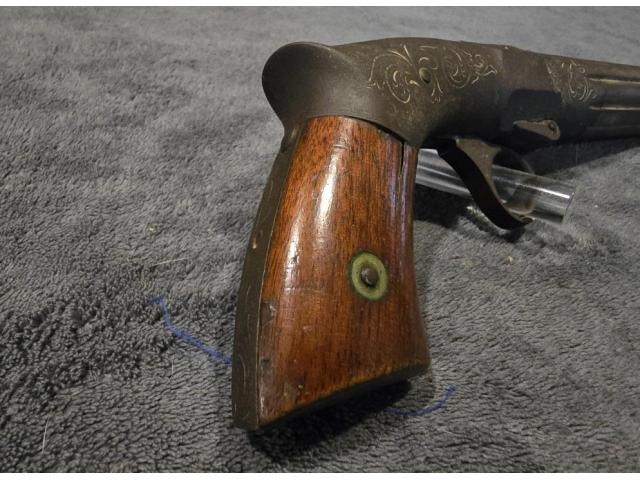 Here we have a 1850's or likely U.D. Civil War Era Robbins & Lawrence 5-shot, 31 Cal Percussion Revolver / Pistol Project. It has very decent grips, trigger has tension, hinge is good.