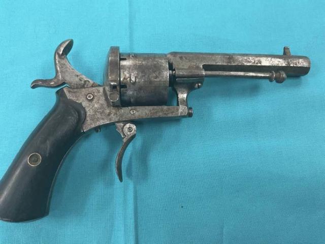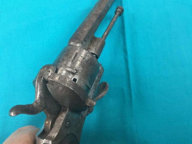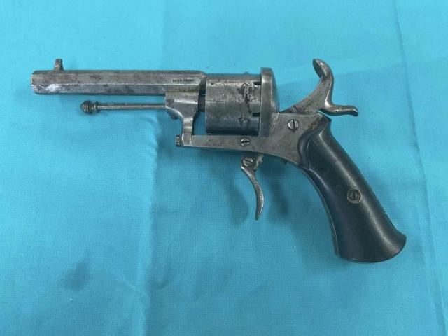 This Belgian 7mm Pinfire revolver is in above average condition, likely manufactured close to the turn of the century. It has a crisp and fully functional action, and reflects the refined features of its era. As part of a race car drivers estate, it has remained in a safe for the last 50 years. Make this unique weapon part of your collection.