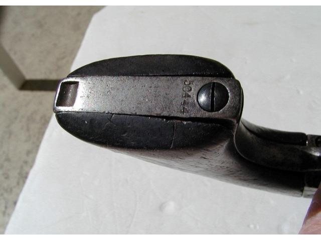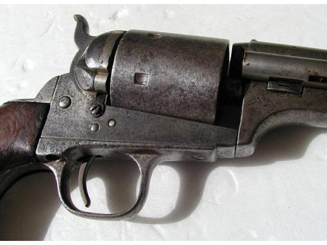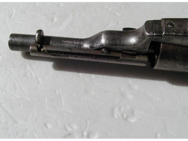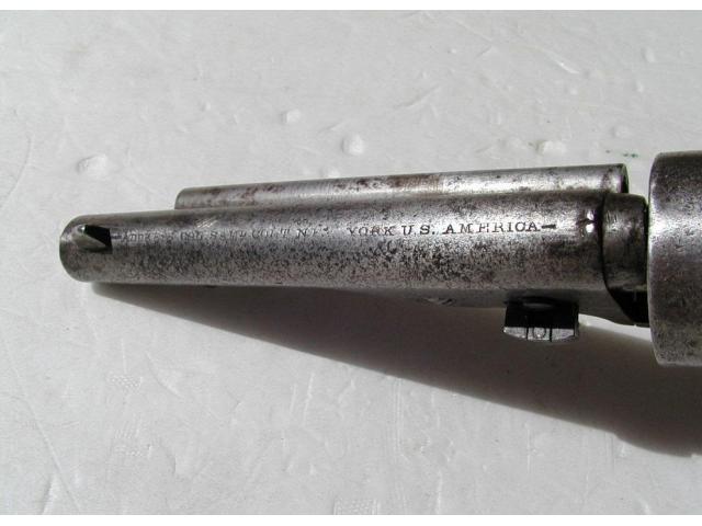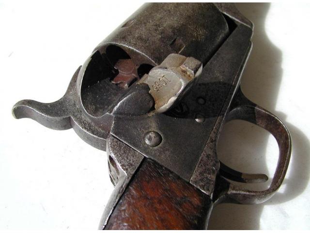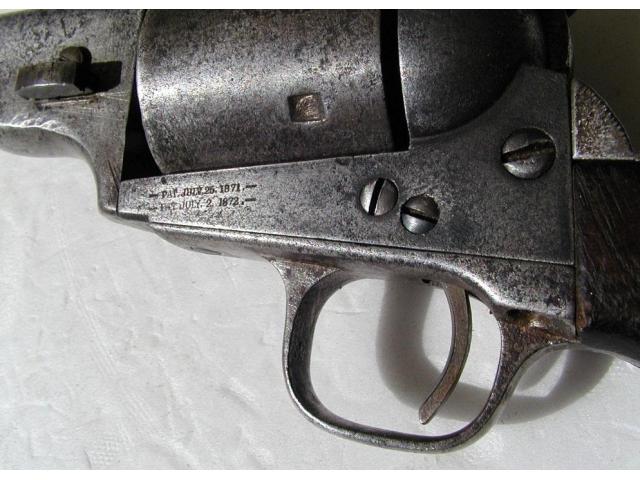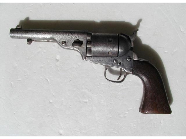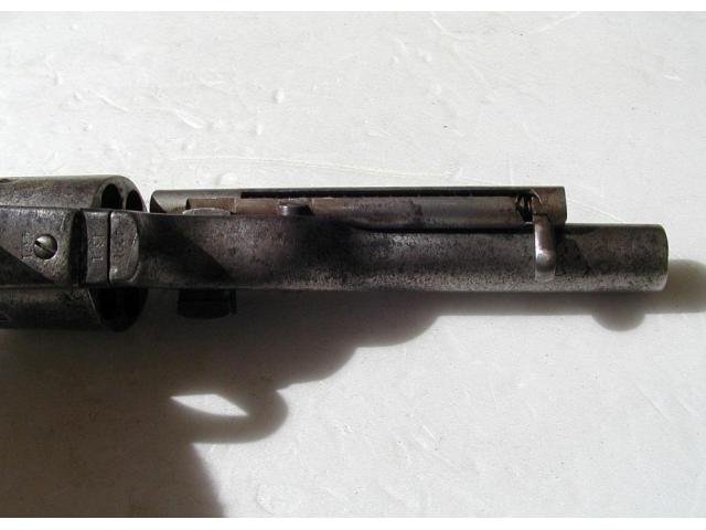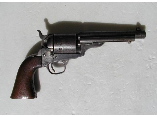 This is an original Colt Open Top revolver, calibre .44rf, and made is 1872. It has Army size Grips and a shortened barrel to 5 3/8 inches.