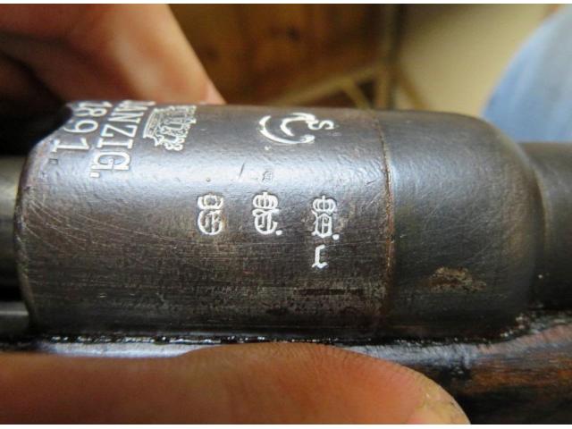 Metal finish is nice Turk arsenal reblue. Bore is very good and bright with strong rifling and a little pitting. Stock was Turk arsenal refinished and shows some normal handling marks. Right side buttstock has faint German proof mark cartouches.