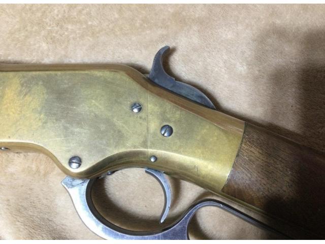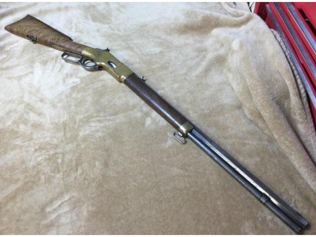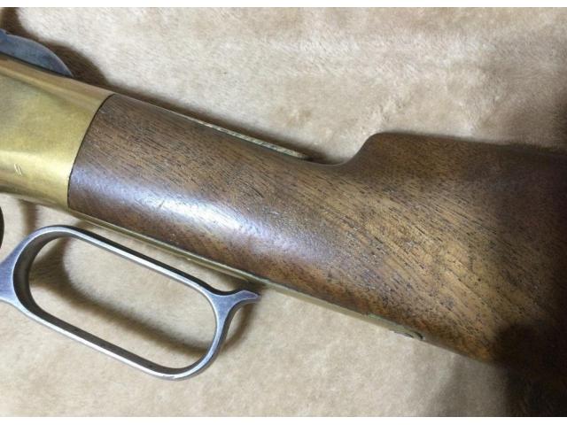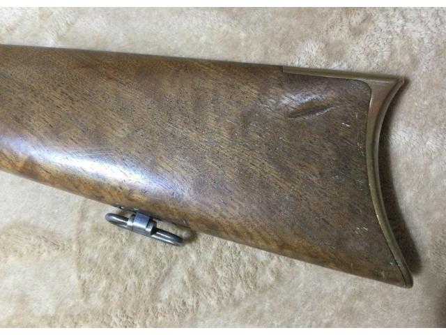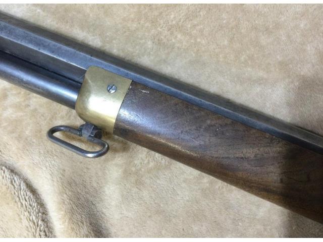 This ANTIQUE WINCHESTER 1866 THIRD MODEL in is in approximately Antique Average condition.. Octagonal barrel, blue barrel with brass frame, differs from Henry in that it has a wood forearm, frame cartridge loading port, and separate tube mag. Total production reached 170,101 for all models. Mfg. 1873. Serial Number 1182xx. Barrel bore is bright, shiny, and has very little pitting (- one of the best bores I have seen in this age of gun).