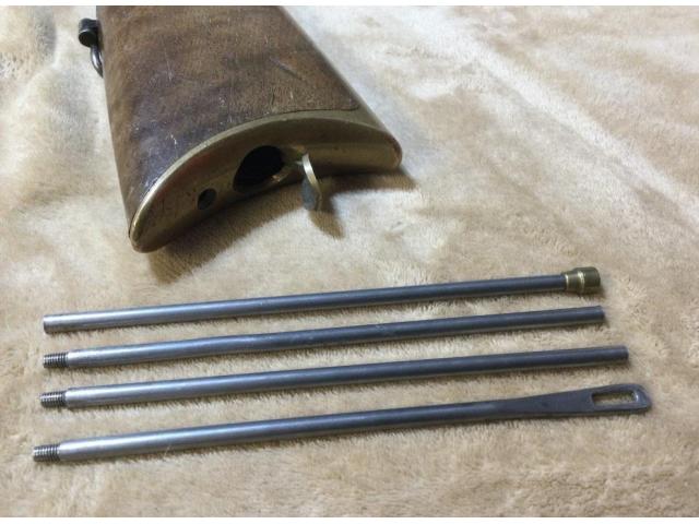 Comes with a brass and steel cleaning rod (inside of buttstock), and a custom padded wood case 51 x 8 x 3.5. Total Wt. 18 lbs.