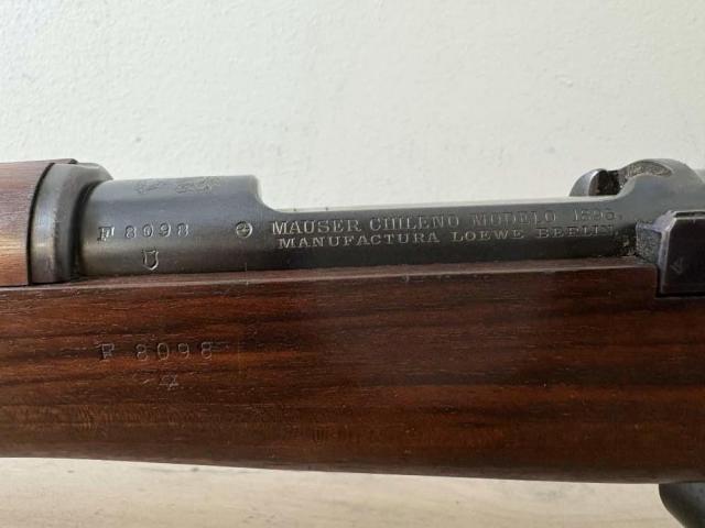 Chilean Mauser Modelo 1895 bolt-action rifle chambered in 7x57mm Mauser. Manufactured by Loewe, Berlin prior to 1897. Receiver is crisply marked "MAUSER CHILENO MODELO 1895" and "MANUFACTURA LOEWE BERLIN", with the full Chilean crest above.