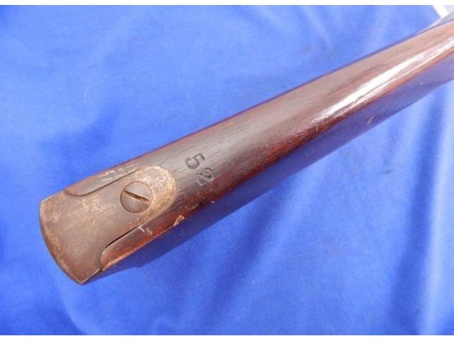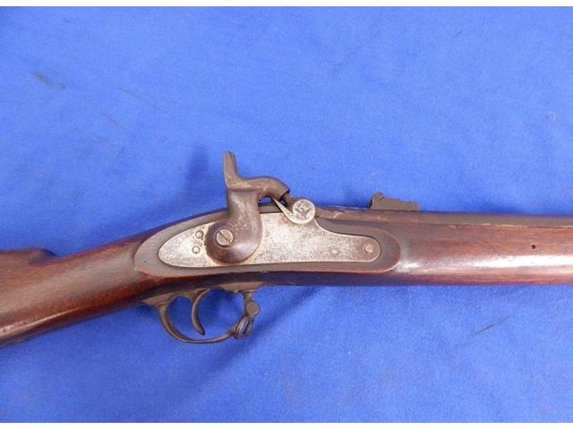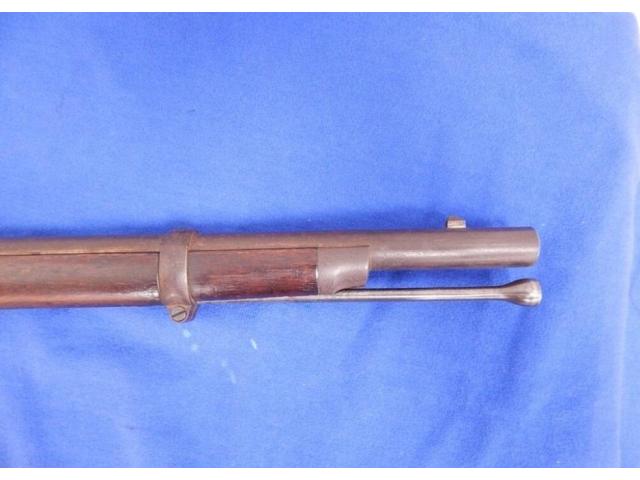 Measures 56" overall with 40″ barrel, and Musket remains in fine, as found untouched and uncleaned condition. All markings are present. Bore and actions are fine. Lock and barrel a dated 1864. Barrel has correct A.M.C. stamping forward the bolster. Stock is very fine with sharp edges.