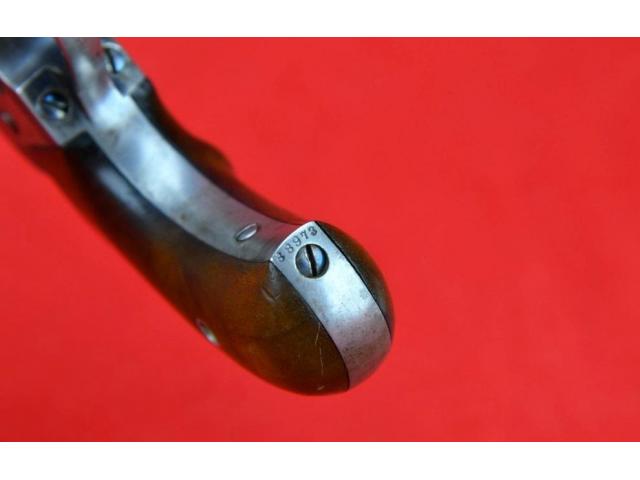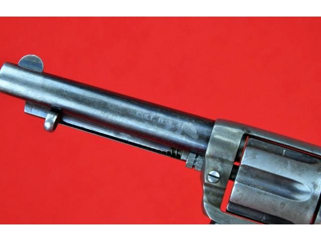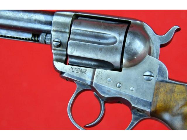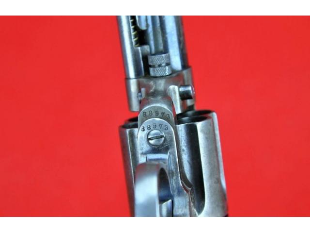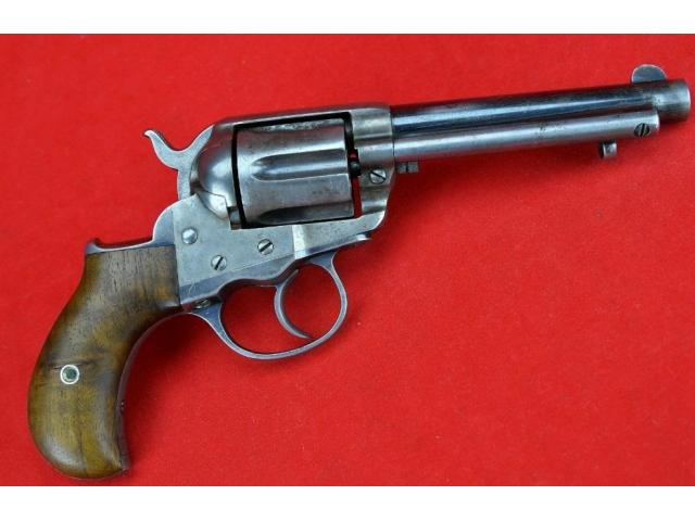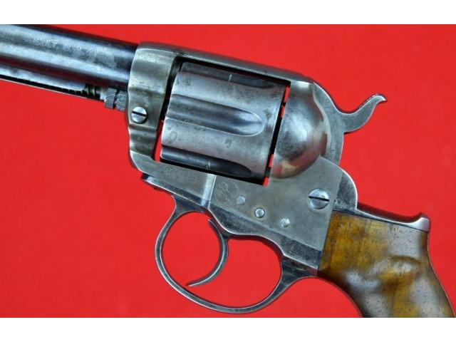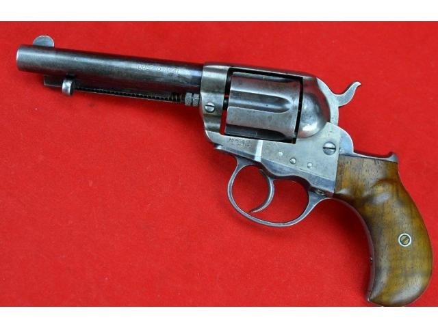Wow, this is a great old Colt Model 1877 double action "Thunderer". Chambered in the desirable .41 Colt, 4-1/2" barrel, serial number 88973 - Made in 1892. The frame retains some bright original case colors with the balance being a light worn mottled silver. The cylinder, barrel and guard have nice bright fire blue with light wear to a silver. Partially shiny bore with strong rifling. Rates 8/10.