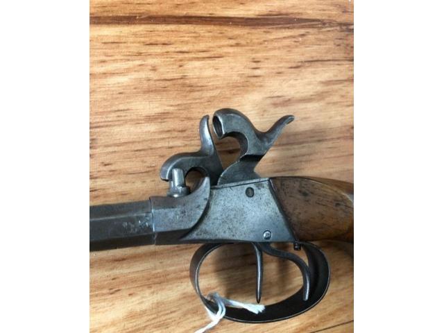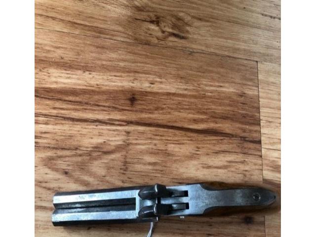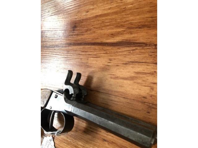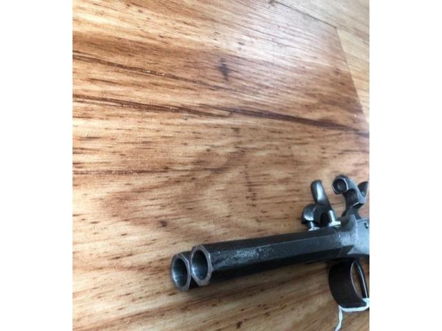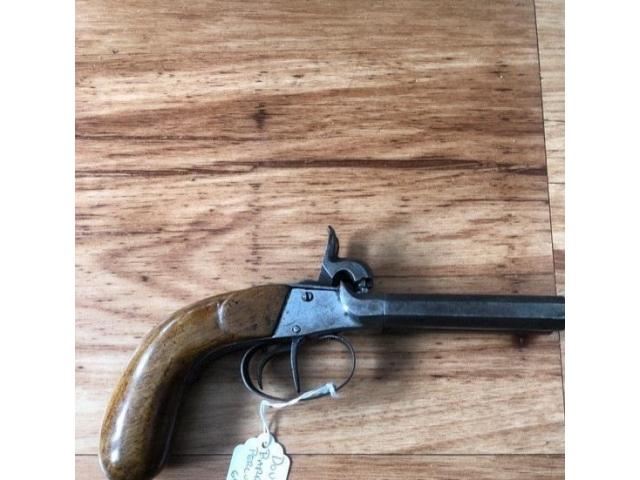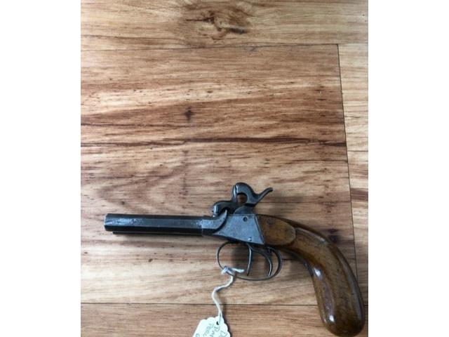 Double barrel percussion pistol. Action works properly. Antique so no ffl needed. Ships direct to you.