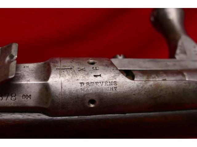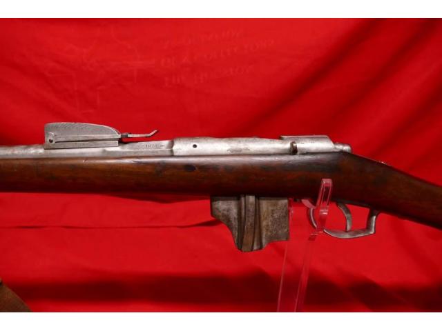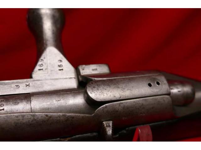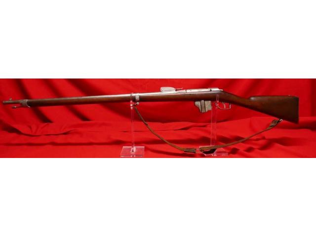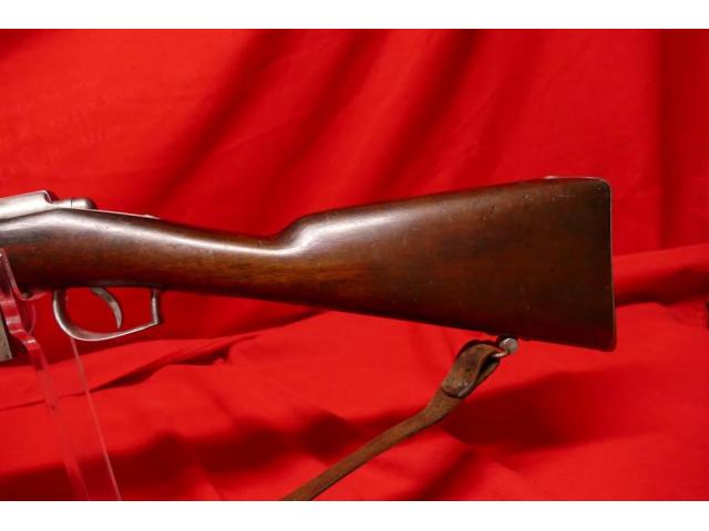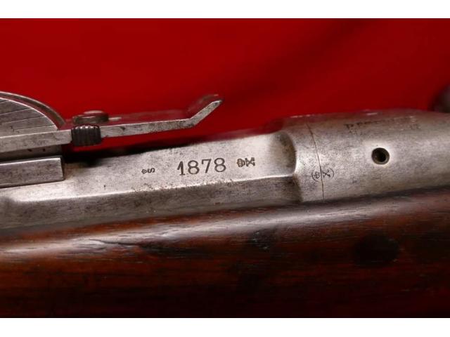 1878 production. Has the later sight graduation in meters. Excellent bore. matching numbers. Original rod? The sling is possibly original. Excellent wood. Has a bright metal finish with patina. Excellent overall condition.
