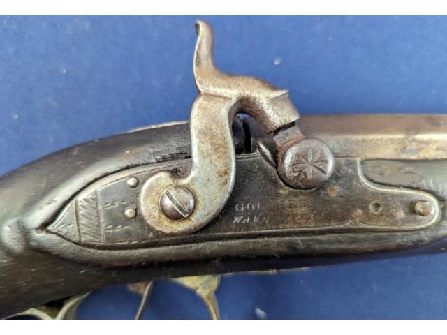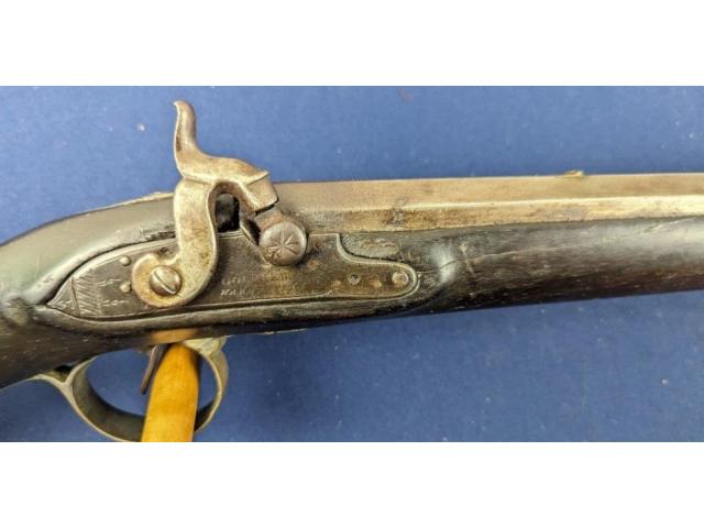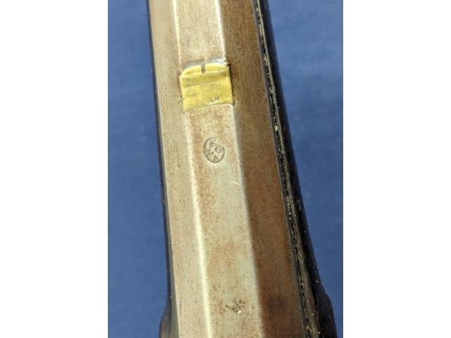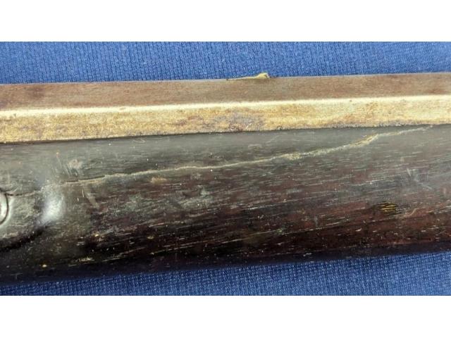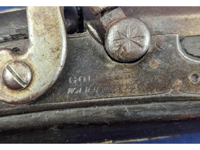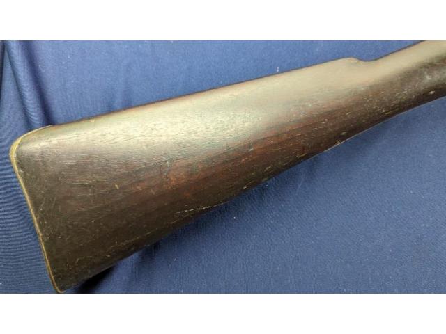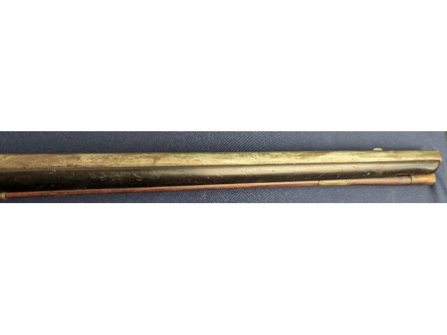 The longarm measures approximately 56-1/2" overall with a FULL LENGTH 42" barrel. Golcher lock. The barrel is a tapered round/octagon which is pinned to stock denoting early manufacture. The musket remains SMOOTBORE.