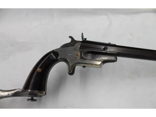 Here is a very rare Frank Wesson .22 caliber pocket rifle with 18" barrel. Serial number is :588 with a stock serial number of:562.This is a swivel breech and still works well! Shipping right to your door will be £13