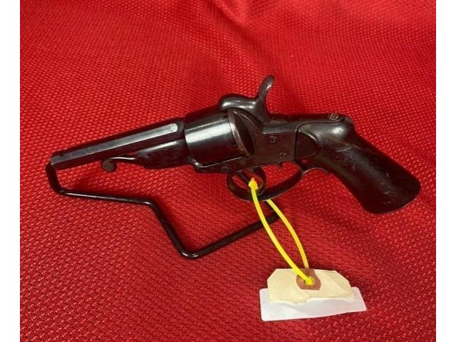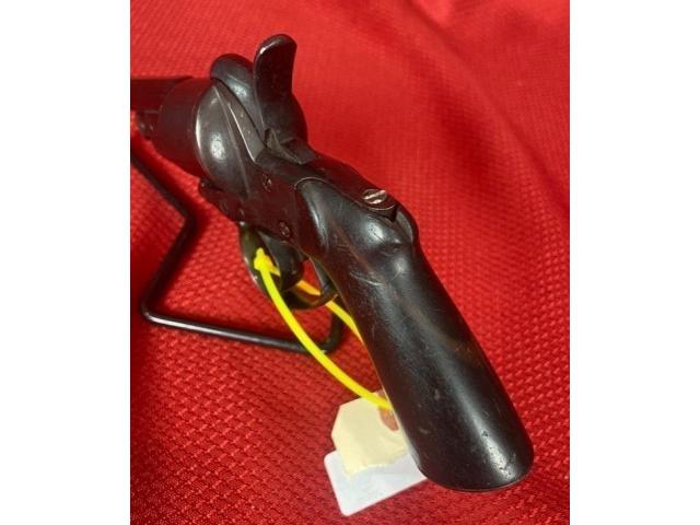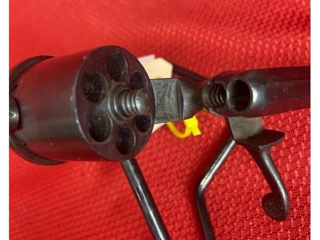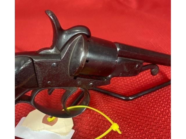 Up for sale is a antique Javelle M. St. ETIENNE revolver. It features a 3.5" octagon barrel and is chambered for .32 pinfire. The blueing is about 75% intact. There is some very light pitting on the frame below the hammer.