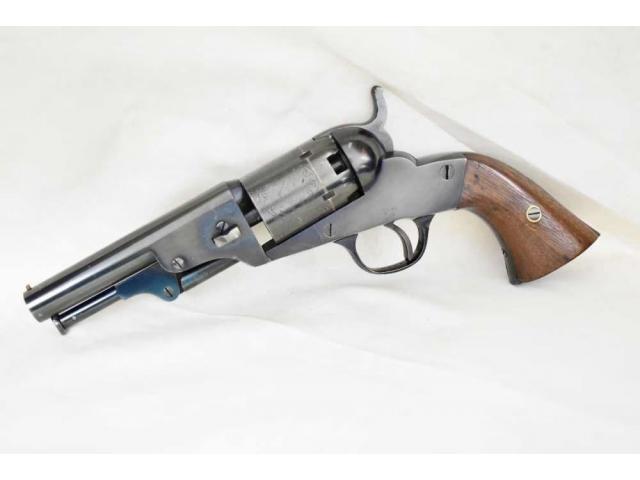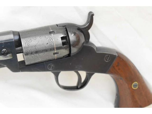 They only made about 1000 of these percussion revolvers so they don't turn up often and usually have little to no finish left. This one has all its markings in tact, numbers match and everything appears crisp.