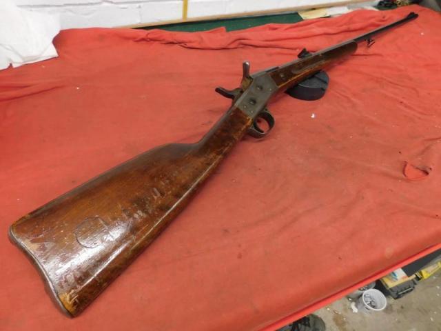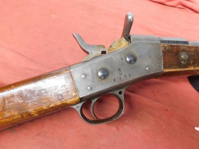 Dated 1875, has been sporterized. Shows overall finish wear. 33" barrel has nice bore, but needs a good cleaning. Action locks up tight, works fine. Pre 1899 antique