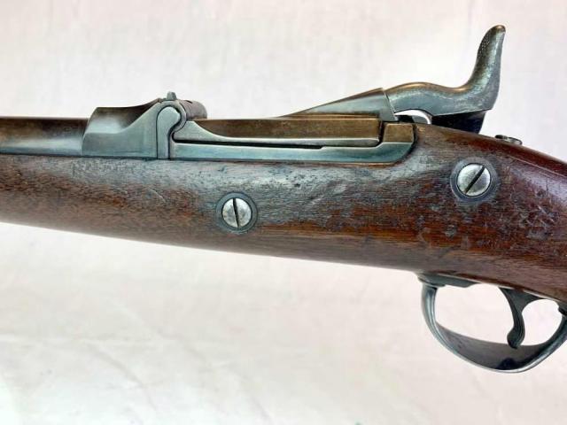 Very nice Springfield Model 1881Trapdoor Forage Shotgun. The bore is excellent and it has the correct two-click tumbler. Please don’t hesitate to ask if you would like additional info