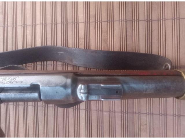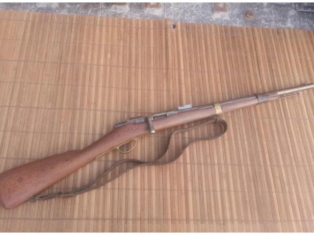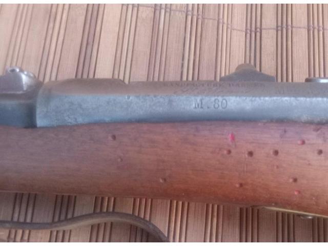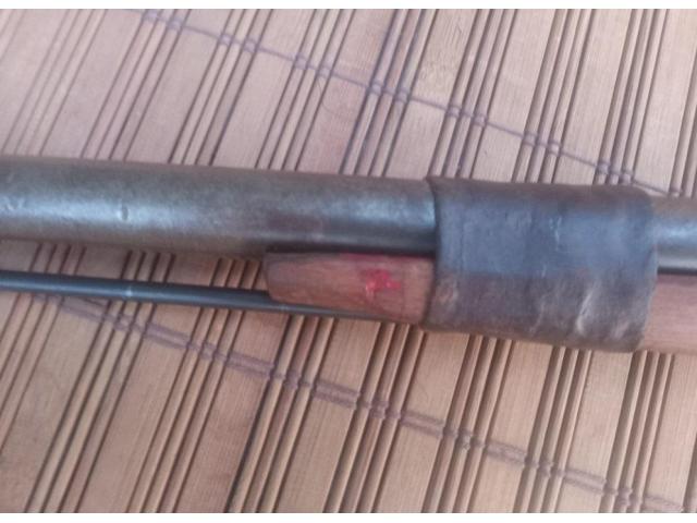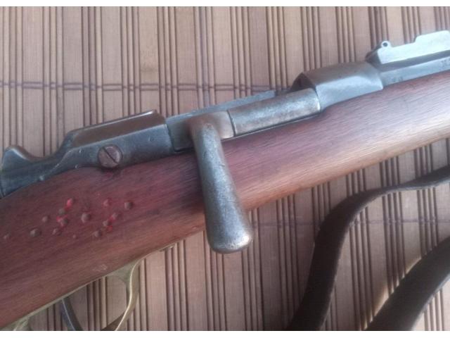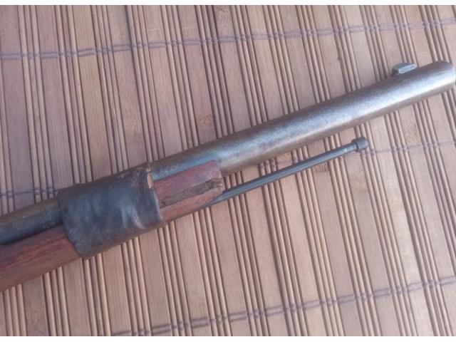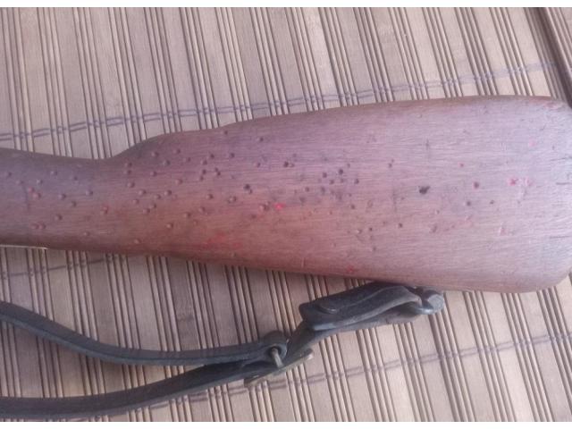 North African issue carbine. Has rawhide repair, and remnants of original red paint. Buttplate was removed. Action works.