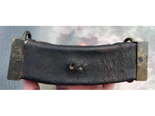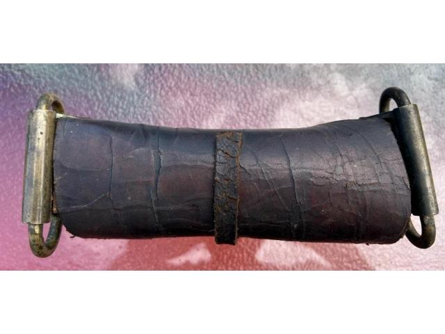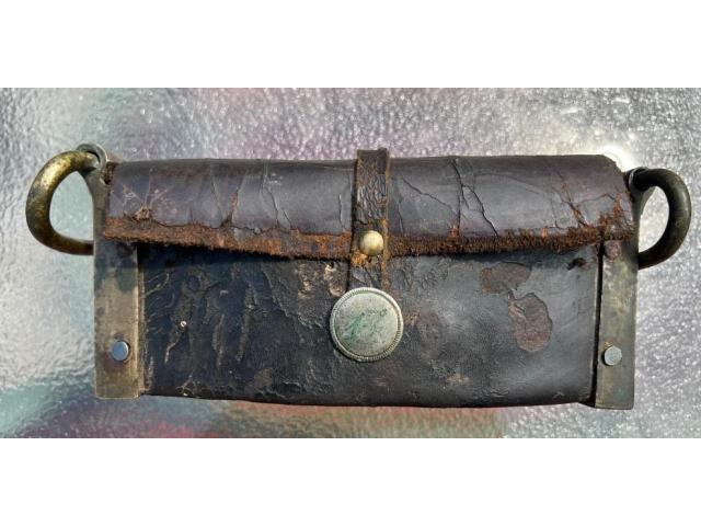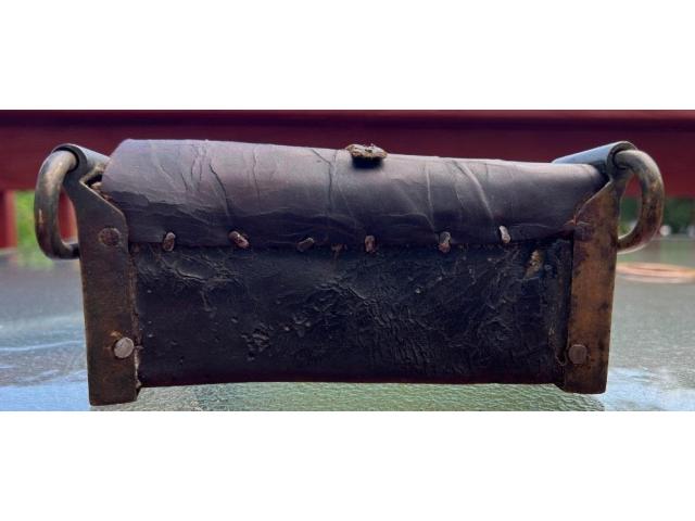 Up for your consideration is a Revolutionary War Era Belly Box Cartridge pouch. Correct period hand cut iron nail construction with the wooden block showing worm holes commensurate with significant age. These curved “Belly Box” pouches were being phased out after the war of 1812 so my estimated date range would be 1780-1815.
