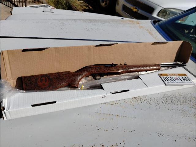 Ruger, 10/22 Sporter Collector's Series, Semi-automatic Rifle, 22 LR, 18.5" Cold Hammer Forged Barrel, Satin Black Finish, Engraved Altamont American Walnut Stock, Adjustable Rear & Gold Bead Front Sight, Manual Safety, 10 Rounds, 1 Magazine, Includes 2025 Collector's Series Metal License Plate, Decal and Lapel Pin