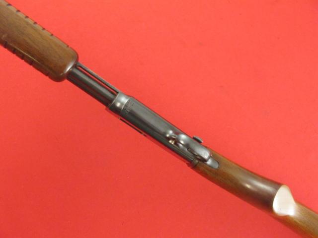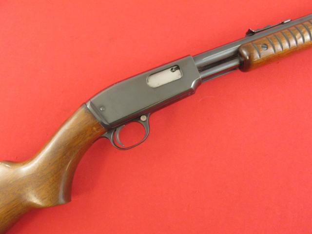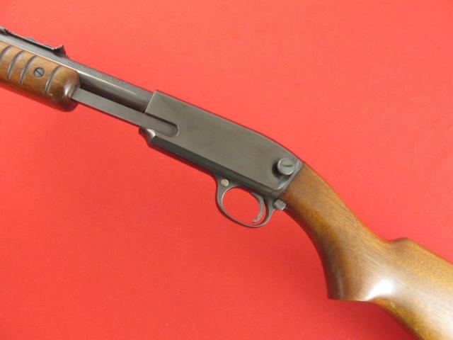 This is a Pre-64 Winchester model 61 pump action rifle in 22cal. It is chambered for 22 long, long rifle, and short. It was manufactured in 1952. It is a blued gun with a 24" barrel. It is in good shape showing some thinning on the barrel, a few light handling marks, and a couple small spots of shallow pitting on the barrel from poor storage. Someone has etched an ID number under the model number. The stock and forearm show typical light dings and surface scratches for its age. It has a metal buttplate with a 13 1/2" length of pull. The bore is shiny with good rifling. The serial number is 1932**. A nice older rifle that would make a nice addition to any Winchester collection.