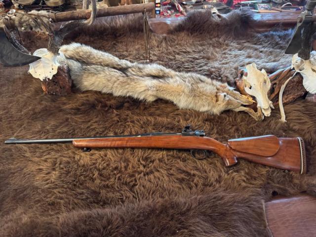 Mexican Mauser Md. 98 7-57 Caliber Custom Sporterized Very Nice! 22" Barrel with Williams Peep Sight & Scope Mnts, Monte Carlo Cheek Piece,Walnut Custom Stock, Adjustable Trigger set up at 2.75 Letoff, Detachable Sling Swivils,13.25 in. to Pachmayr Recoil Pad,Bore Chamber Bright and shinny , Overall Excellent cCondtion