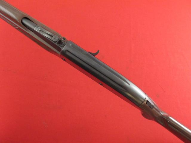 This is Remington model Nylon 66 semi-auto rifle in 22lr. It is the Mohawk brown/blue model with a 20” barrel. It is in good shape showing some light handling marks and some small spots of light speckling on the receiver from poor storage. The stock and forearm are in good shape, a few light surface scratches but no cracks or chips. The bore is shiny with good rifling.