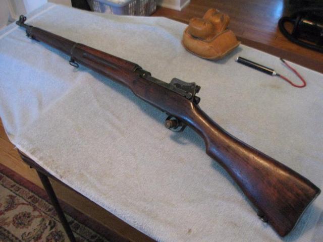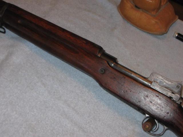 THIS AUCTION IS FOR A U.S. MODEL OF 1917 (P-17) REMINGTON RIFLE THAT IS IN FULL MILITARY CONFIGURATION AND IS A "VET BRING BACK". THE CALIBER IS 30-06 SPRINGFIELD. APPEARS TO BE ORIGINAL FINISH ON WOOD AND METAL. SOLID STOCK AND HAND GUARD. BARREL IS STAMPED H.S. WITH ORDNANCE BALL & FLAME ON TOP OF BARREL BEHIND FRONT SIGHT AND A "P" ~TWO INCHES PAST IT. INSPECTOR'S CARTOUCHE ON LEFT SIDE OF STOCK AT REAR OF RECEIVER IS 3GM-K IN A BOX. BOTTOM OF STOCK JUST AHEAD OF PISTOL GRIP IS A "P" AND JUST BEHIND TRIGGER GUARD IS IX FOLLOWED BY EAGLE HEAD AND G56. BARREL HAS A VERY GOOD BORE WITH FOUR GROUVE'S AND SOME LIGHT PITTING. RIFLE DOES NOT APPEAR TO HAVE SEE MUCH USE. SHOULD MAKE AN EXCELLENT COLLECTOR'S RIFLE AND A SOLID SHOOTER. RIFLES IN THIS CONDITION ARE SELDOM FOUND.