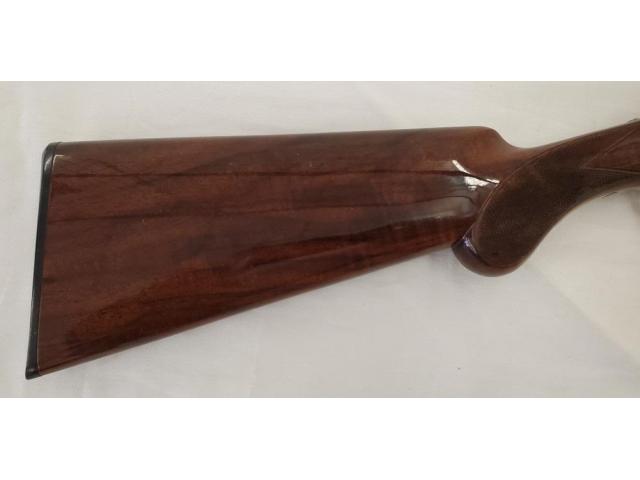 The engraving on this shotgun is very nice. Locks up nicely and trigger and safety are working as they should. Accepts 2 ¾” & 3” shells. Barrel: 28” Stock is walnut with gloss finish and is in excellent shape. Vented sight rail with sight bead on the muzzle end. Serial: 24083NM863 Capacity: 2 Has two Improved Cylinder chokes installed in both barrels. Comes with one Invector Improved Cylinder choke with tool