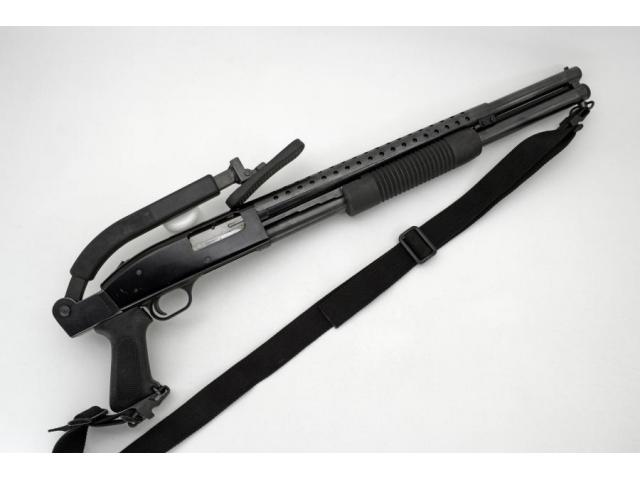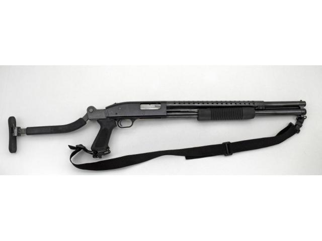 THIS IS A MOSSBERG MODEL 500 ATP8 PUMP ACTION SHOTGUN IN 12 GAUGE 3" INCH CHAMBER WITH A 7 ROUND TUBE MAG AND A FOLDING REAR STOCK. THE BORE IS BRIGHT AND SHINY VERY NICE, AND THE BLUING IS IN VERY GOOD CONDITION. THE GUNS SEEMS TO FUNCTION LIKE IT SHOULD AND THE BARREL IS 20-3/4" LONG. THIS WILL MAKE A GREAT GUN FOR SELF DEFENSE OR FOR THE EMERGENCY GRAB BAG. GOOD LUCK!!